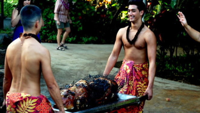 一、烤豬宴:烤豬宴做法是先在地上挖一個大坑,再在周圍圍上一圈石頭,先用火把石頭烤熱,再把一些烤熱的石頭放進豬的肚子里,用大的芭蕉葉把整只豬包好,放在坑中,蓋上土,悶上5、6個小時就好了。這樣烤制的豬肉又香又嫩,肥而不膩,還可以邊吃邊觀賞歌舞表演。