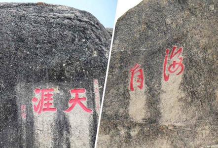 天涯海角石。 兩塊巨石來歷頗有些神話色彩,傳說一對熱戀的男女分別來自兩個有世仇的家族,他們的愛情遭到各自族人的反對,于是被迫逃到此地雙雙跳進(jìn)大海,化成兩塊巨石,永遠(yuǎn)相對。后人為紀(jì)念他們的堅貞愛情,刻下“天涯”“海角”的字樣,后來男女戀愛常以“天涯海角永遠(yuǎn)相隨”來表明自己的心跡。